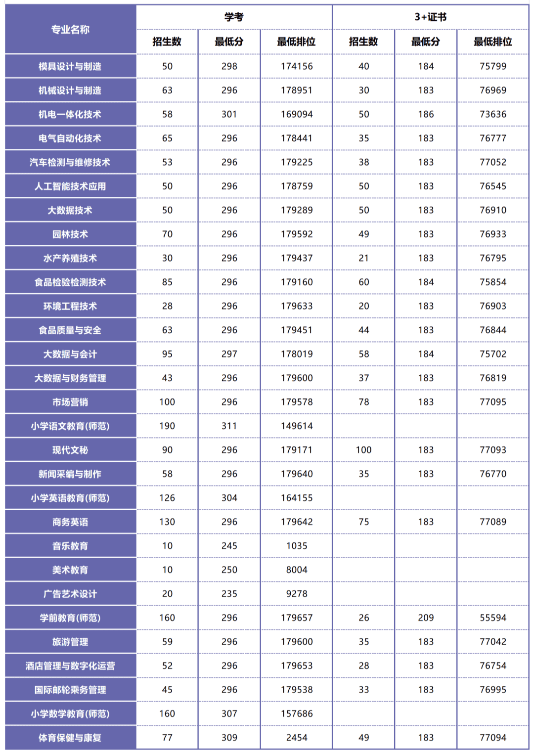 备注:以上数据仅供参考。部分没有招录数据的专业为2023年夏季高考新增专业。